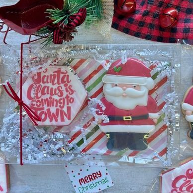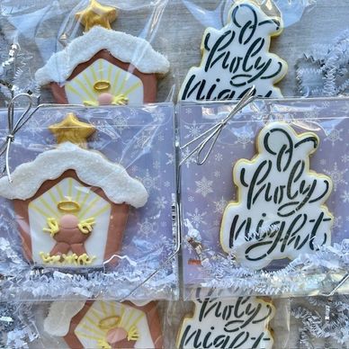Painting cookies is incredibly easy and loads of fun. It is no different than coloring in a book. The iced sugar cookie comes with a palette of four paint colors (i.e., food coloring), a brush, and instructions. The finished product is almost too pretty to eat, (almost). A perfect addition to a stocking or an activity to enjoy on Christmas Eve with family.. Ingredients listed on the back of the bag. Limited quantities available. $4.00/each